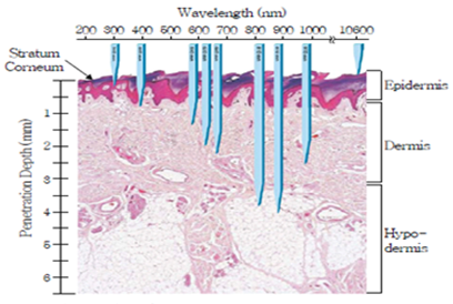Near-infrared rays : Penetrate more than 6 ㎜ into the skin and heat the inside of the skin